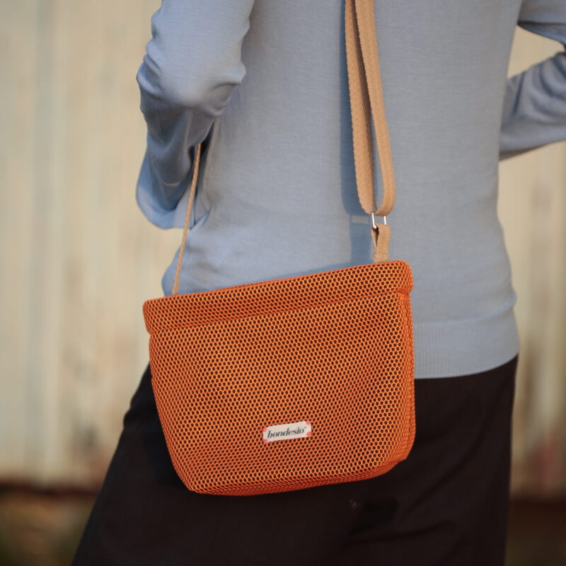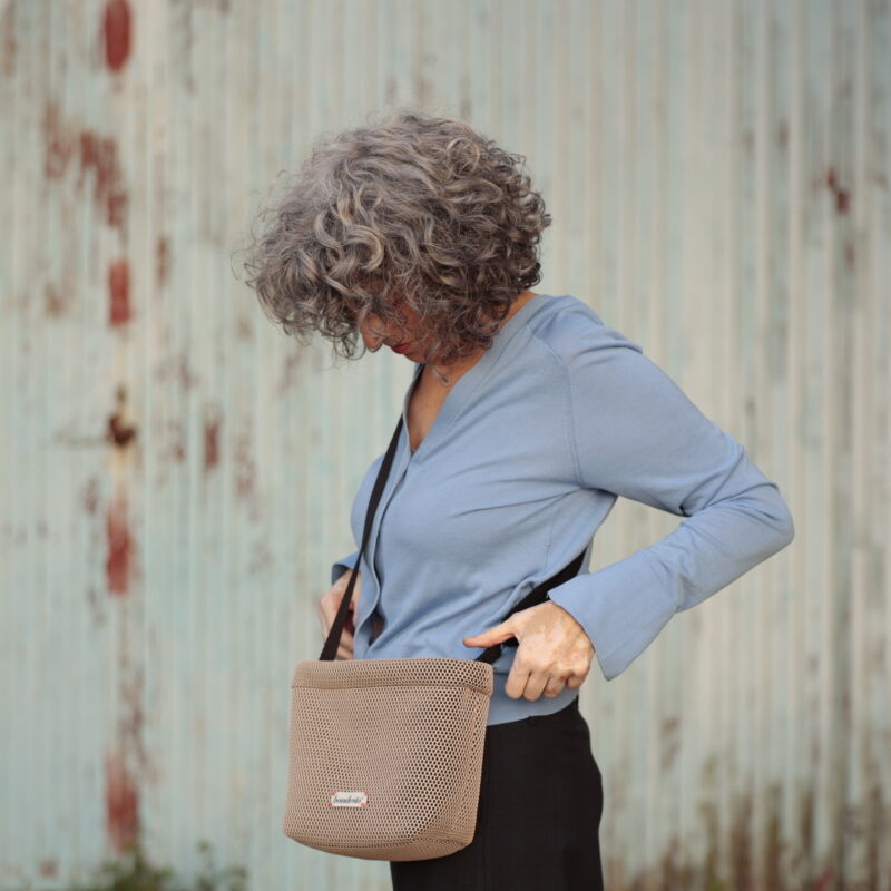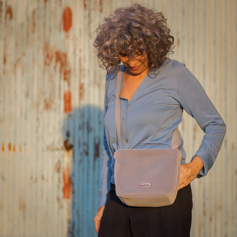 El Bolso Uxue está confeccionado en tejido Brisa, un material ligero, transpirable y muy cómodo de llevar.