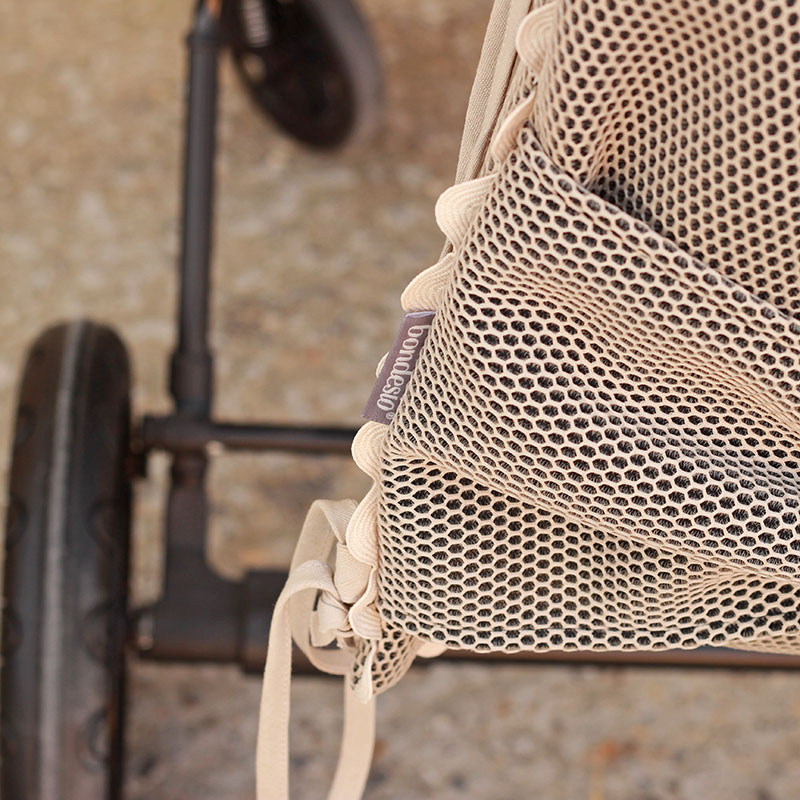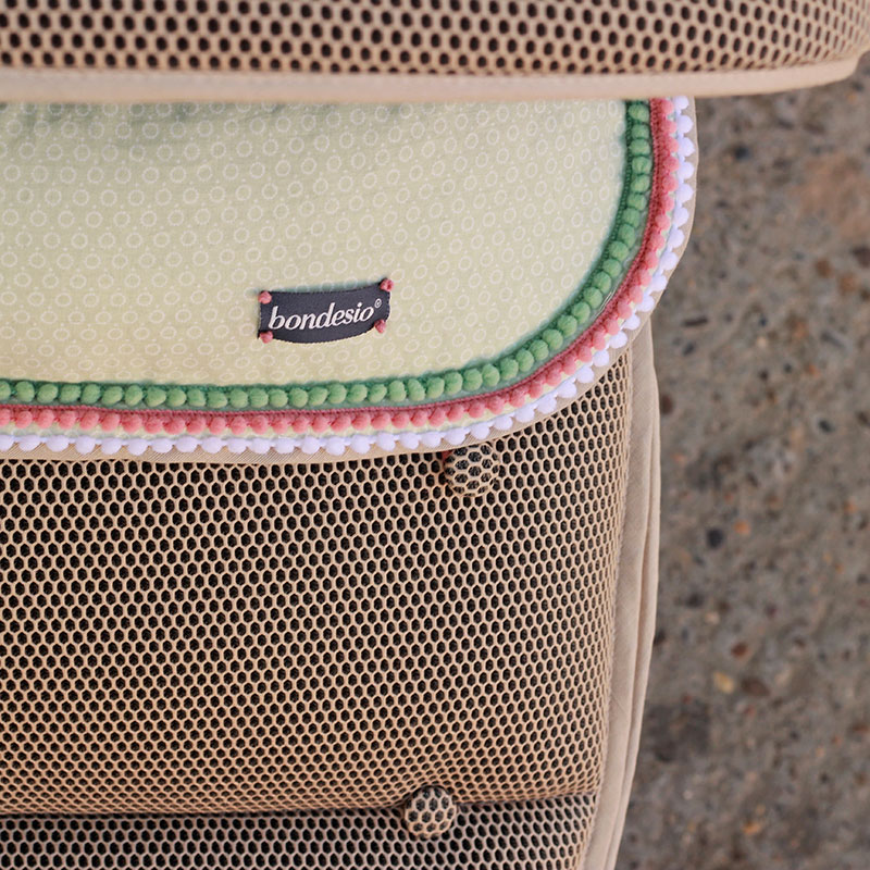 Para esta nueva temporada SS18, vamos a hacerle frente a la subida de las temperaturas con nuevos coordinados en tejido Brisa que no dejarán indiferente a nadie, y es que temporada tras temporada, y yá son cinco las que lleva con nosotros «¦.. nos sigue enamorando como el primer día, por su versatilidad, ligereza, buen lavar, dureza y resistencia al sol y a todas las inclemencias del tiempo. Lo seguimos mezclando sin miedo con diferentes texturas y terminaciones, como el nuevo «Bondesio» de hoy, que lo hemos confeccionado con tejido Brisa en tono beige para el exterior,y algodón guirnalda verde para el interior. Para la terminación del saco, que también podrás utilizar como funda de verano en los días de más calor, hemos mezclado y cosido bies y mini madroños en diferentes colores.